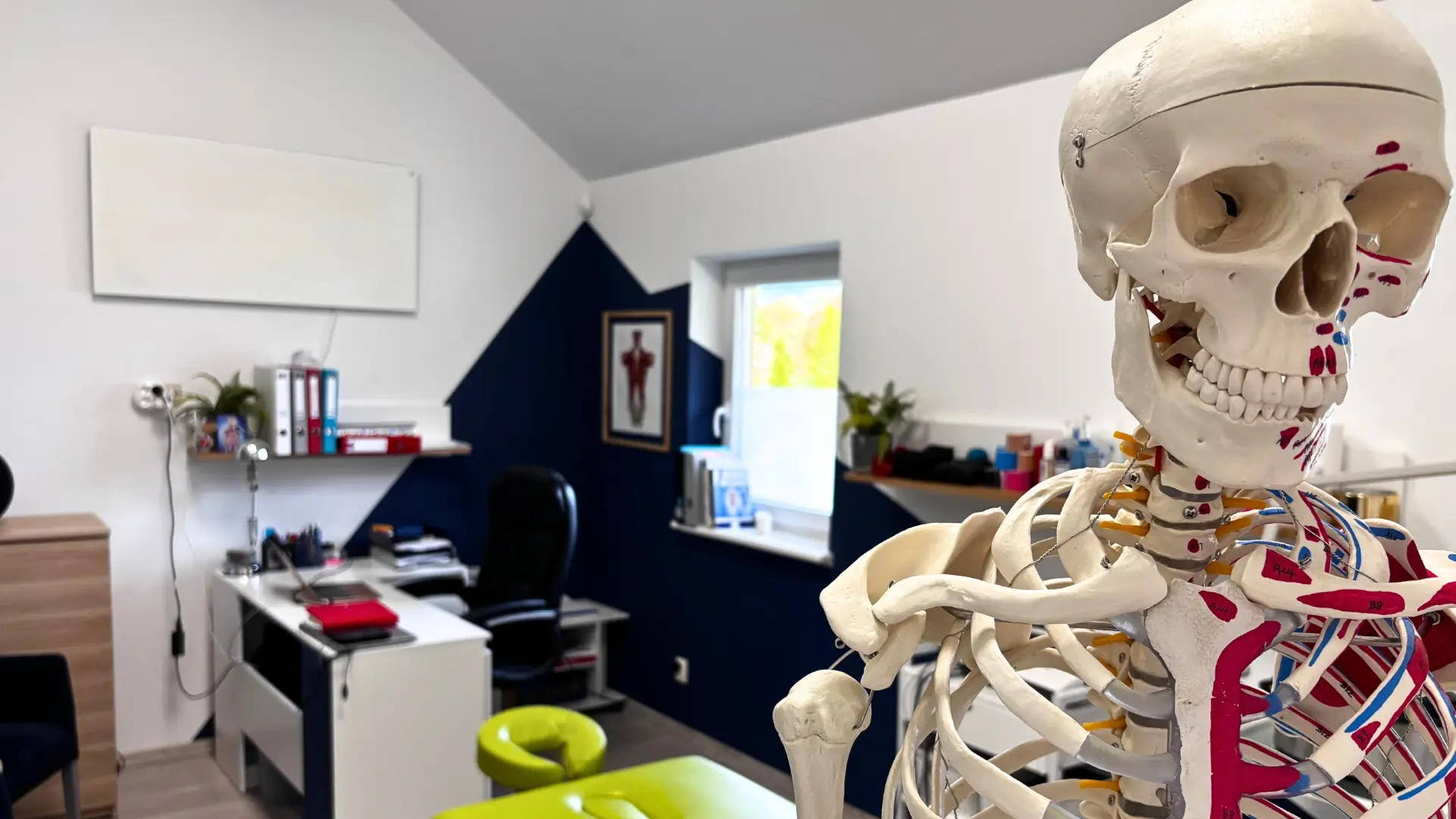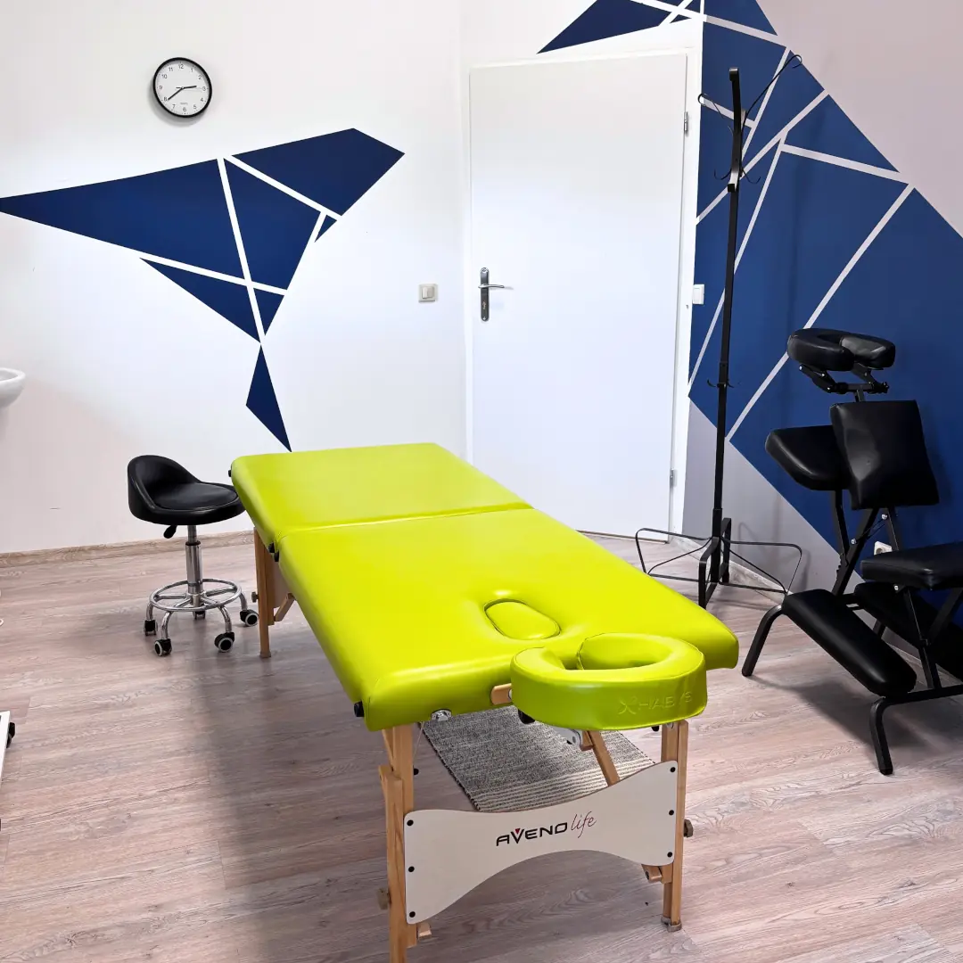 Mój gabinet to w pełni wyposażona przestrzeń przygotowana do pracy manualnej, fizjoterapii i masażu. Znajduje się tu profesjonalny stół zabiegowy, stanowisko do terapii manualnej, zaplecze do fizykoterapii oraz miejsce do rozmowy i omówienia przebiegu terapii.